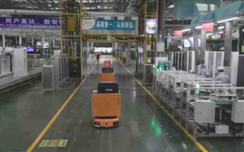 为车载冰箱物流配送打造的智能解决方案,,包含产中物流通过潜伏举升AMR搬运至线边,,,产后成品物流智能仓储,,,流程包含产中物流智能齐套入库,,线边安灯叫料AMR智能配送至线边,,,,成品入库、、、出库,,通过无人堆高车机器人,,,,智能仓储管理替代人工作业管理,,,实现更高存储、、、更高效率、、更具柔性化的解决方案。。。